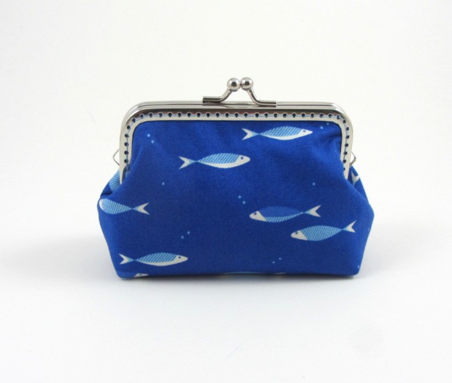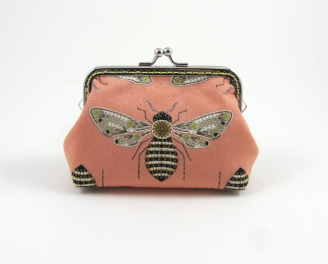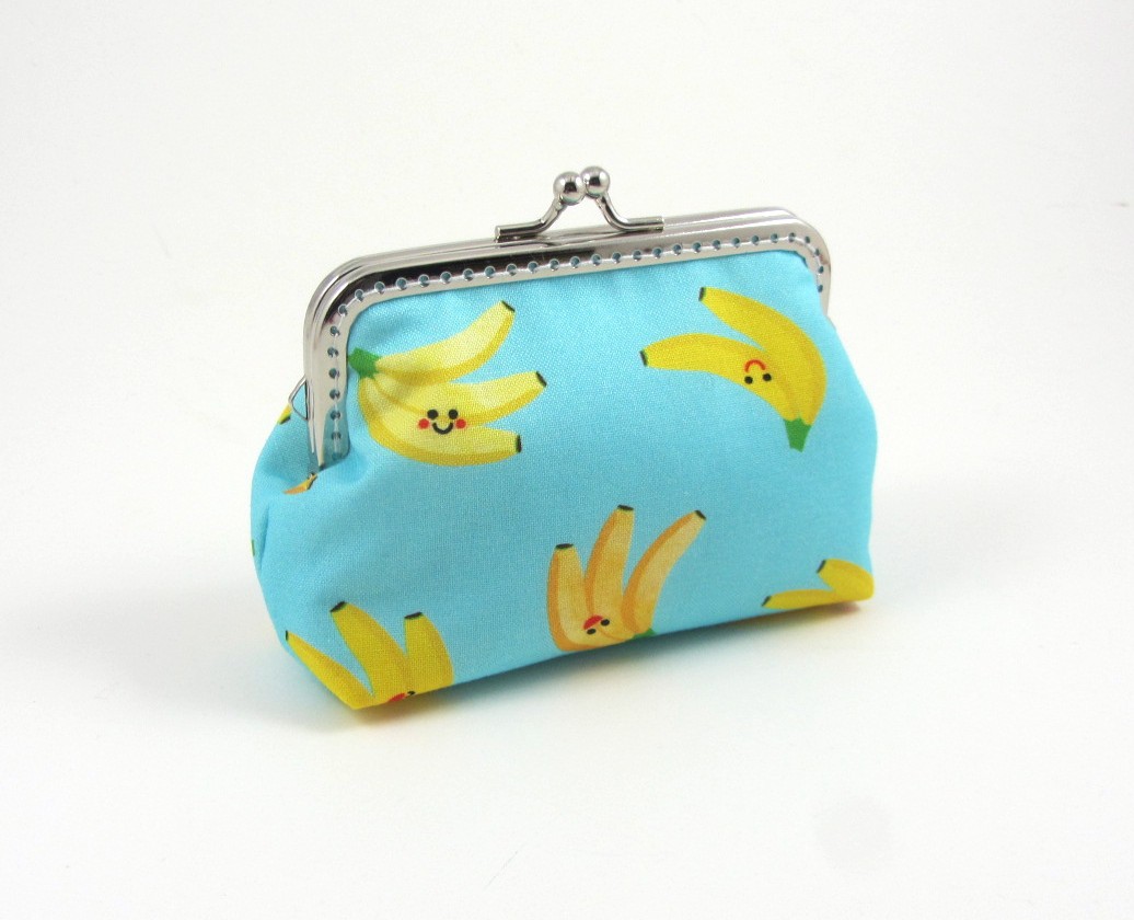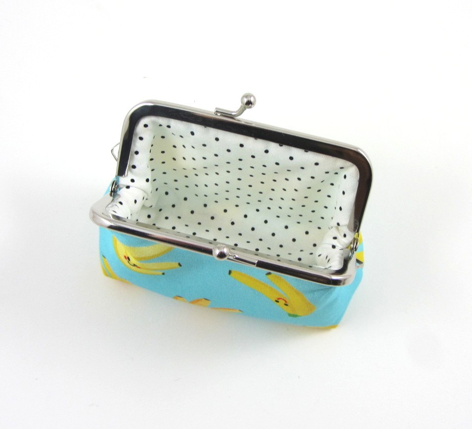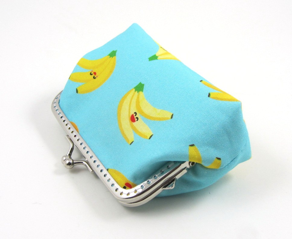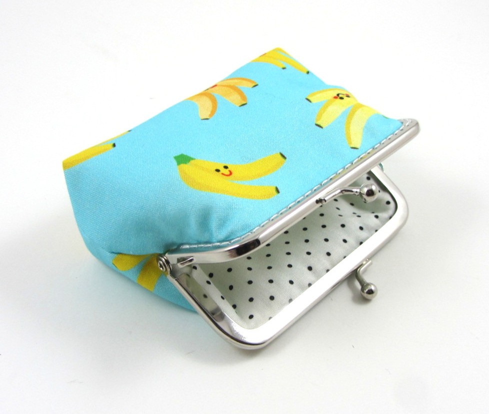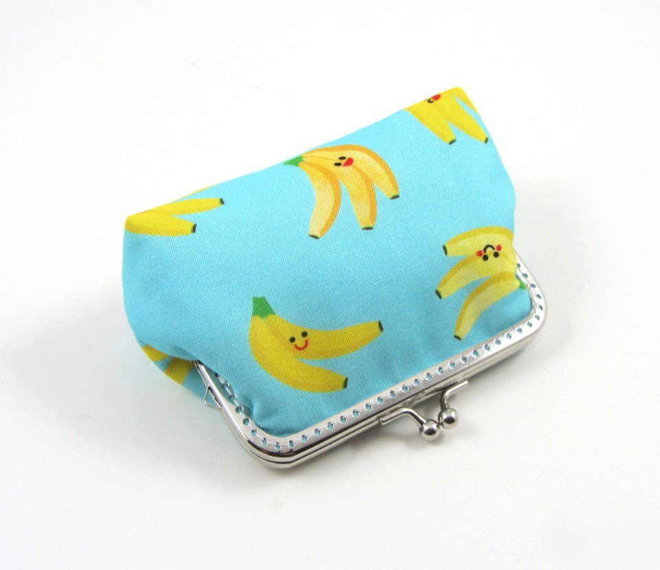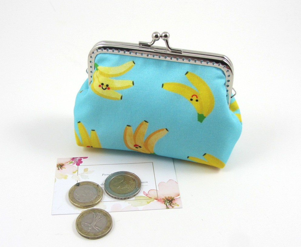 Porte monnaie à fermoir métallique, réalisé en coton banane.