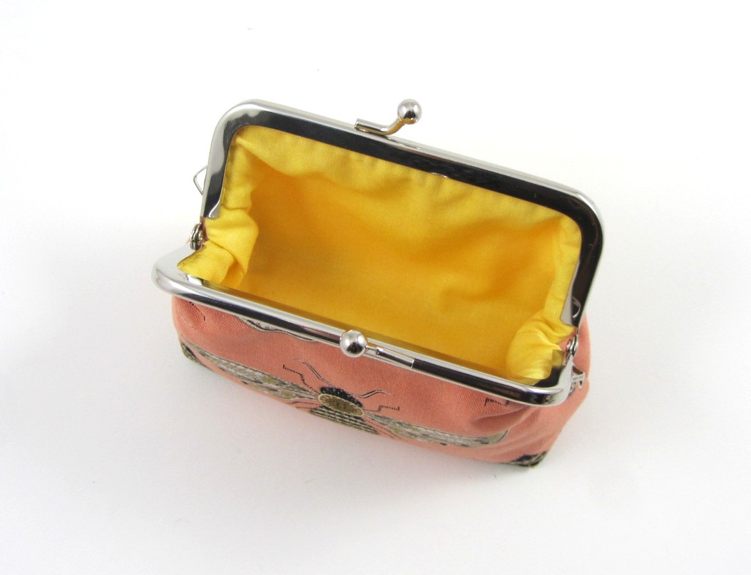 Fermoir métallique clip cousu main, aucune colle n'a été utilisée.