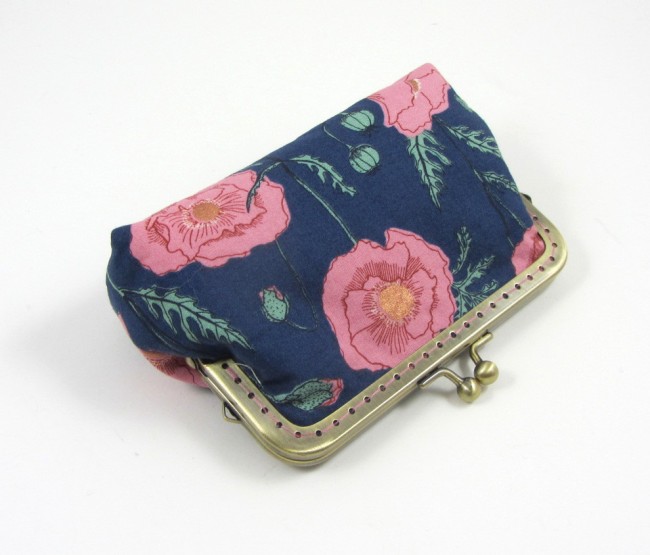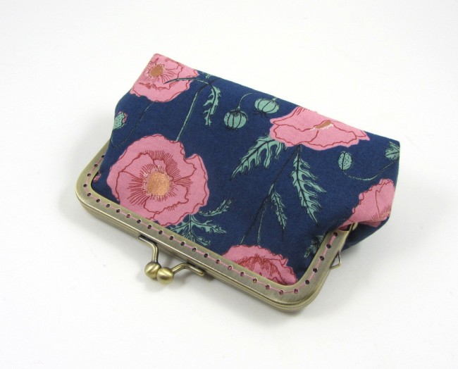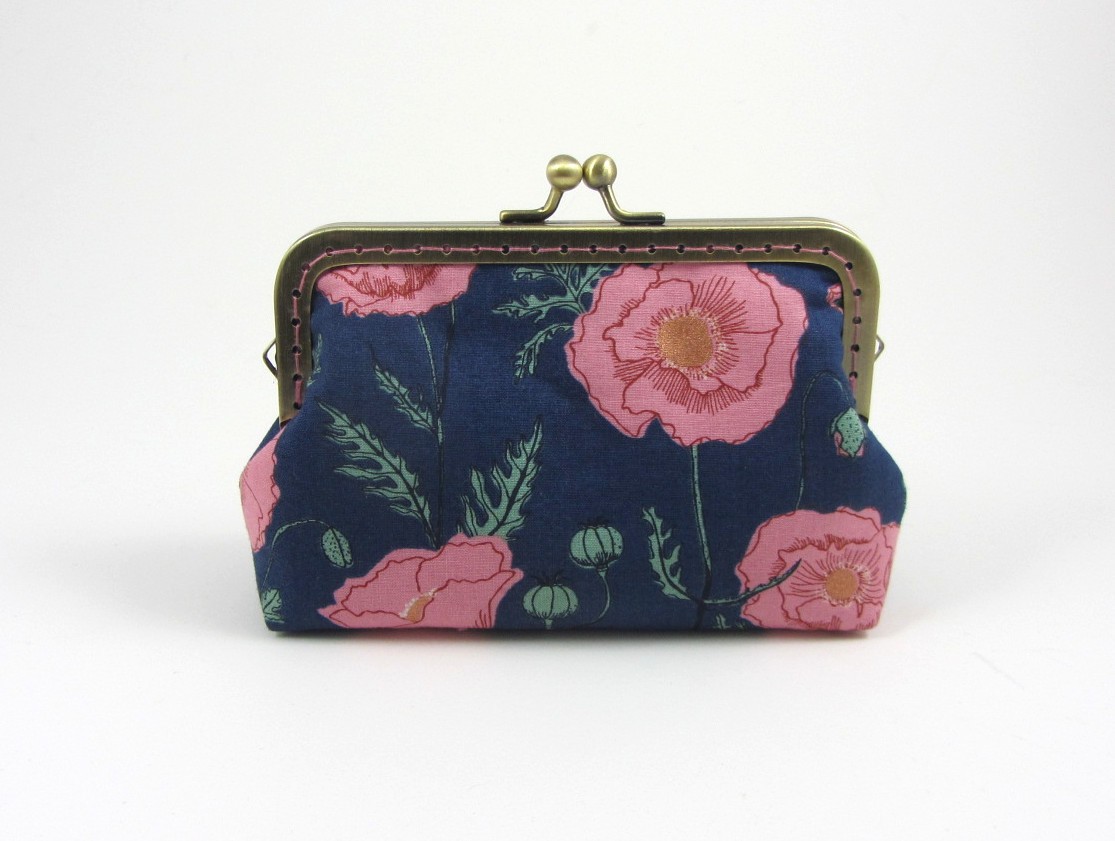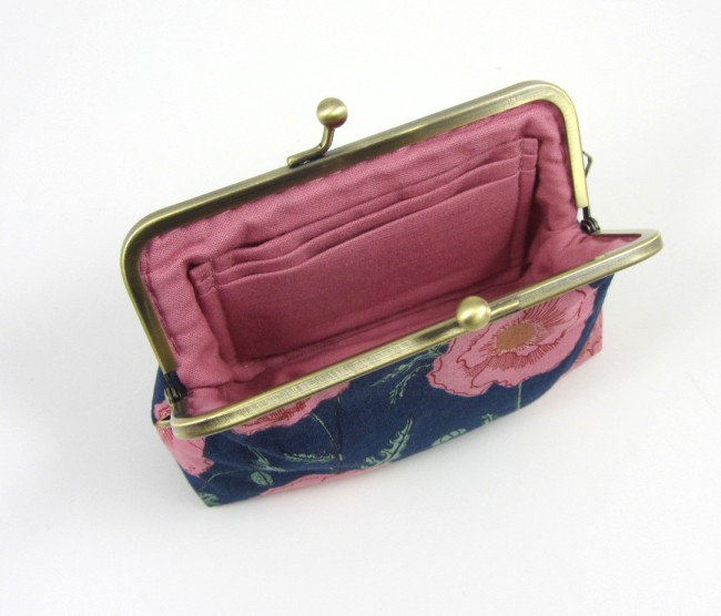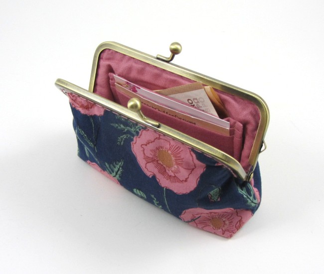 Porte-monnaie artisanal en tissu coton avec fermoir métallique style vintage. Pratique grâce à ses compartiments pour cartes bancaires ou identité, il est compact, élégant et unique.