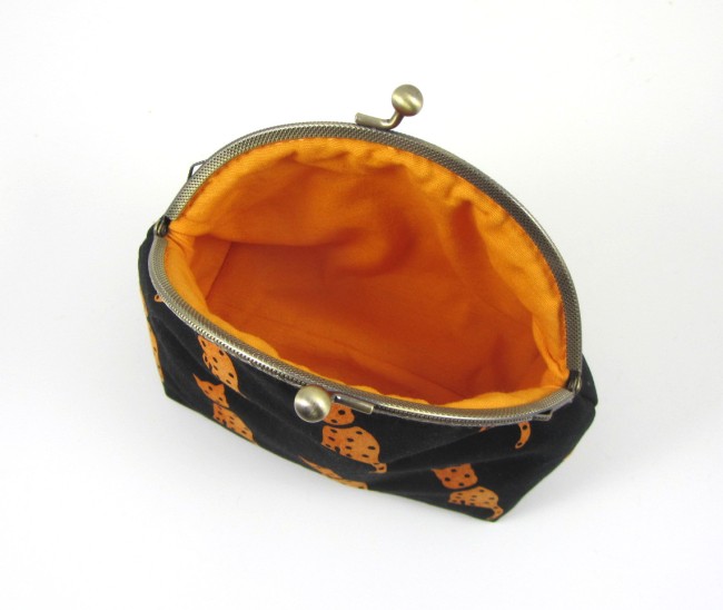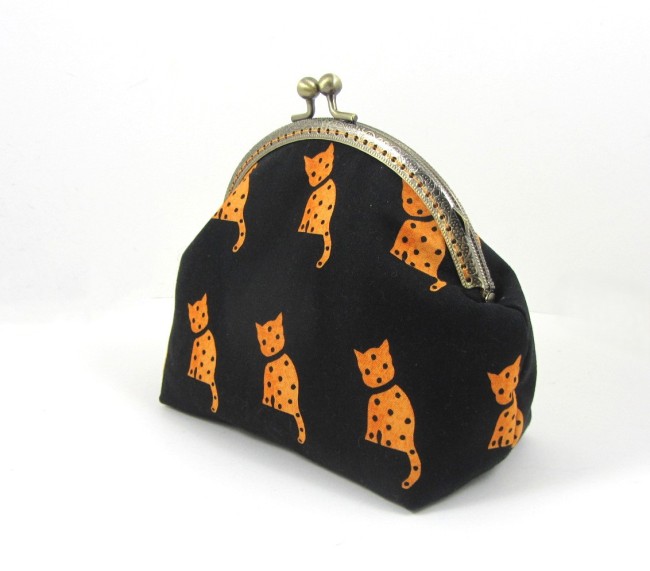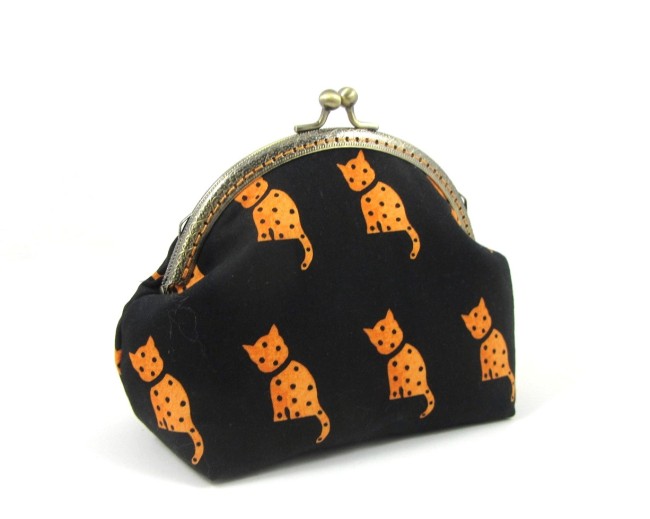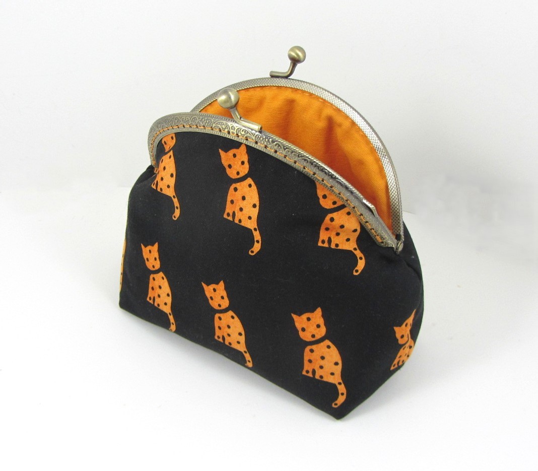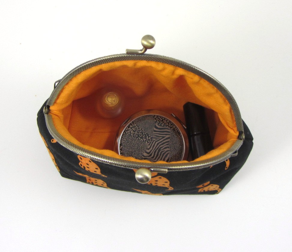 Transportez vos essentiels quotidiens dans cette trousse à maquillage faite main, confectionnée à partir de 100% et dotée d'une armature métallique classique.